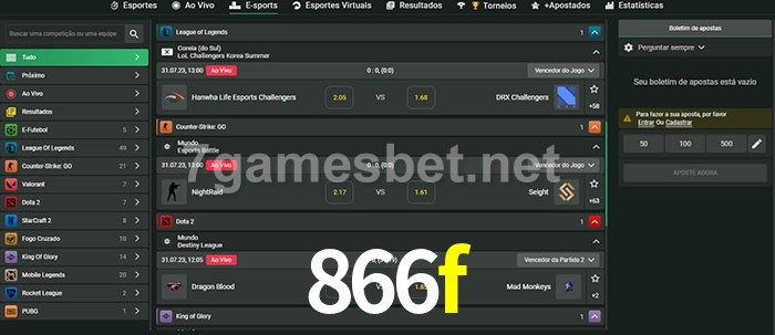 O 866f oferece uma grande seleção de opções de apostas em e-sports com probabilidades competitivas